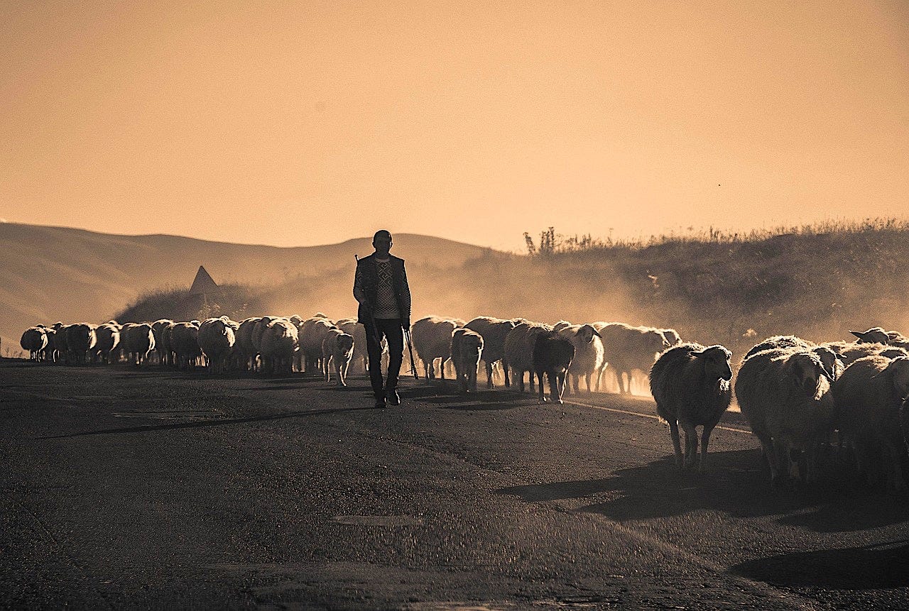 The shepherd calls his sheep
